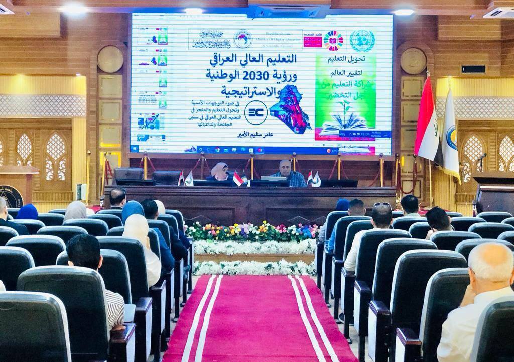 The symposium included several themes, in which the coordinator of the Ministerial Team for E-Learning, Dr. Amer Salim Al-Amir, discussed the mechanism for implementing the United Nations recommendations for sustainable development. The symposium also addressed digital learning and transformation in Iraqi universities.