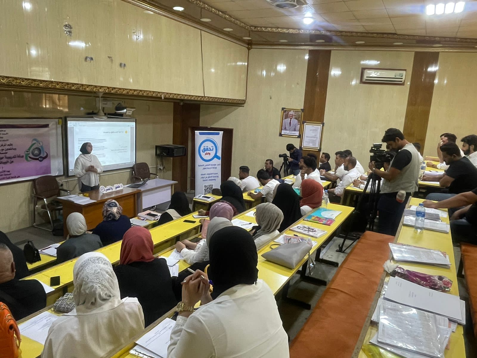 تلاها محاضرة ادارتها الناشطة المدنية نور حمدي العناصر المهمة في المشاهد المصورة وكيفيه البحث عنها ثم تطرقت الى المعلومات الاضافية للتحقق من الاعلام المضلل اضافة الى عرض مقاطع فيديوية حقيقية ومفبركة تلاها تطبيق عملي في تزيف المعلومة ونقلها