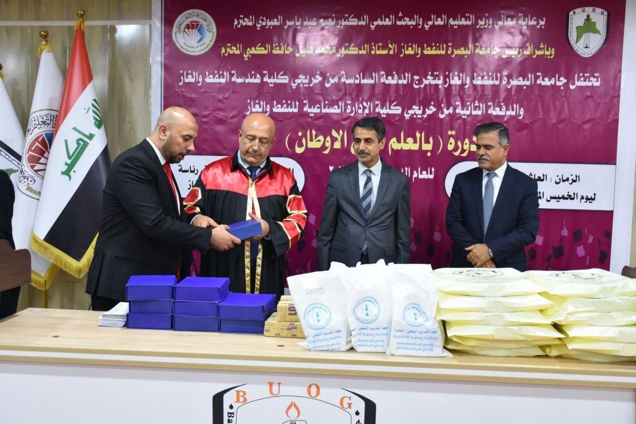 He also expressed his thanks and appreciation to the President of Basrah University of Oil and Gas, Dr. Muhammad Halil Al-Kaabi, and the teaching staff for their great efforts to make this joyful ceremony a success.