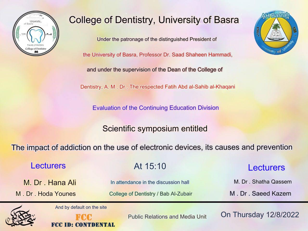 The Division of Continuing Education is holding a scientific symposium entitled The Effect of Addiction on the Use of Electronic Devices, Its Causes and Prevention