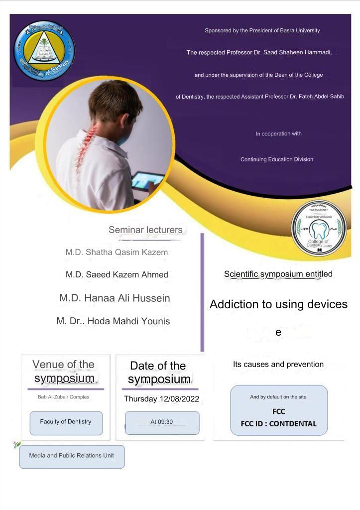 The College of Dentistry is holding a scientific symposium entitled Addiction to the use of electronic devices, its causes and prevention