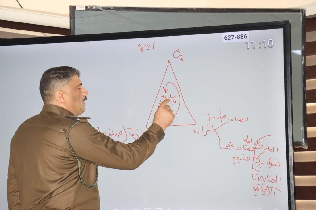 During the course, the presenter (Tayseer Abd Ali Abd) explained on the first day the types of fires and the factors causing them and how to extinguish them to avoid disasters in homes and state institutions and buildings.