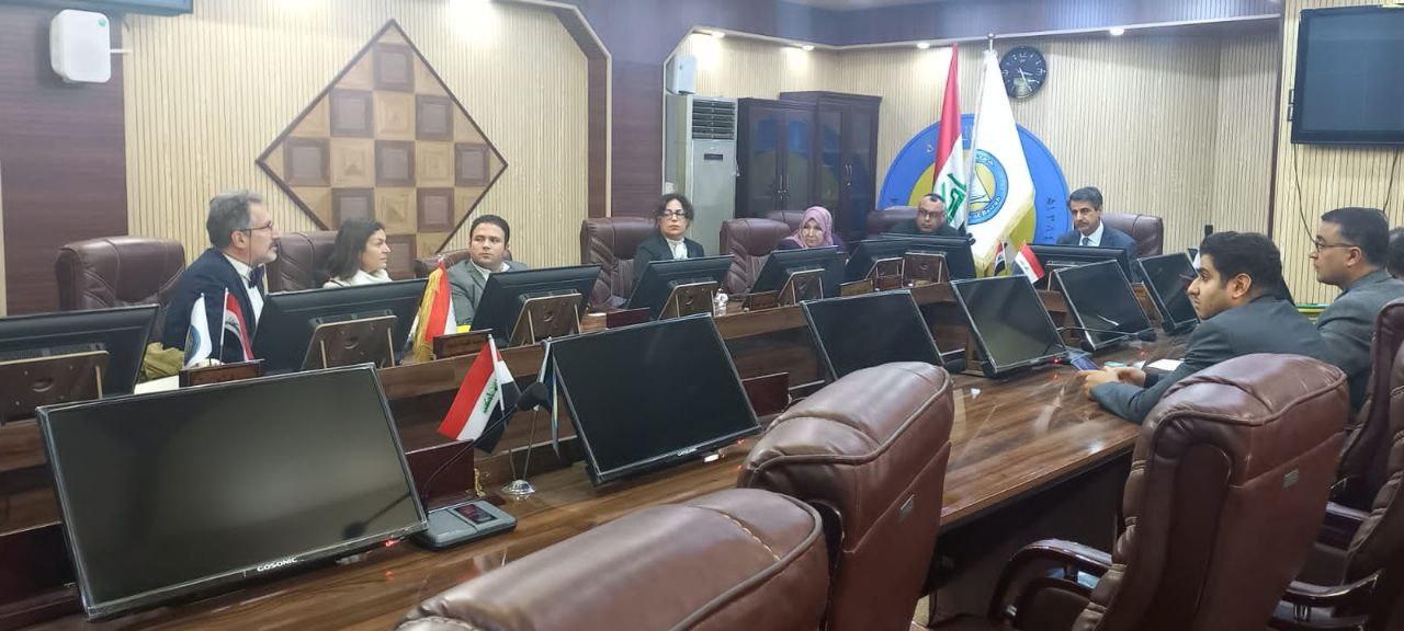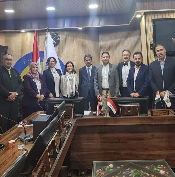 The President of the University of Basrah, Dr. Saad Shaheen Hammadi, received the delegation of the Italian company Eni, which included Barbara Minoo, director of sustainable projects in the company Eni in Italy, Riccardo Ridelli, professor and representative of the University of Catholica, and Mustafa Odeh, director of sustainable development and community investment in Iraq.