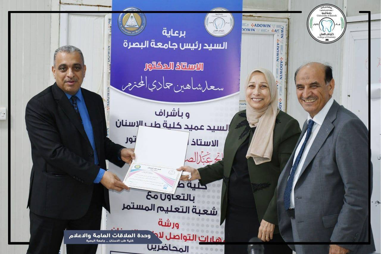 The College of Dentistry at the University of Basrah organized a workshop on communication skills for dentists, in which dentists from various health institutions in Basra governorate participated.