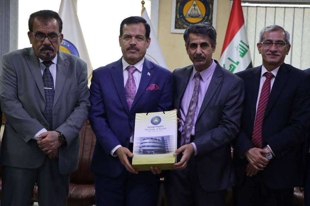 The President of the University of Basrah, Dr. Saad Shaheen Hammadi, received His Excellency the Ambassador of the Republic of Iraq to Japan, Mr. Abdul Karim Al-Kaabi, and his accompanying delegation, in the presence of the Assistant President of the University for Administrative Affairs and a number of deans of colleges, advisors and directors of departments at the university.