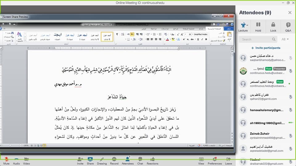 The workshop showed ,, (The overall construction in the poet’s poetry is sober, in light of the text's coherence and cohesion, unity of construction, accuracy of meaning, strength and durability of the composition, all of this shows the prowess of the preacher’s style, durability and strength of his logic)