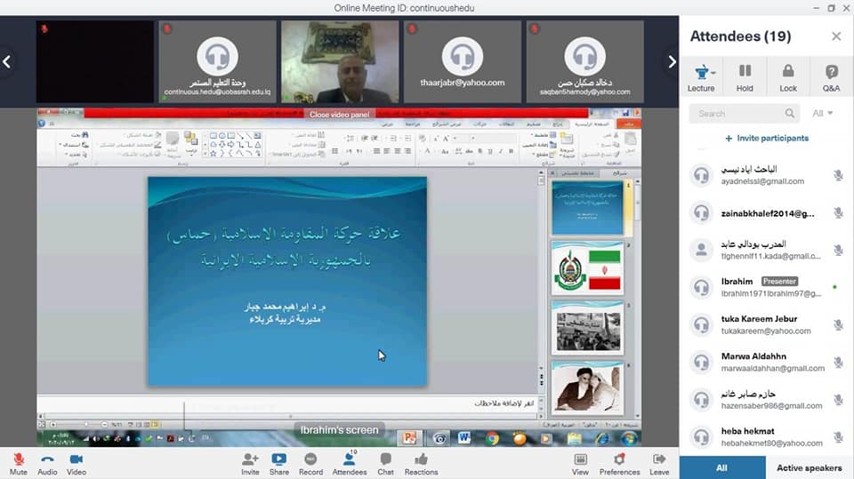 The Continuing Education Unit at the College of Education organized a workshop on .. (the relationship of the Islamic Resistance Movement (Hamas) with the Islamic Republic of Iran) with the participation of researchers and specialists,