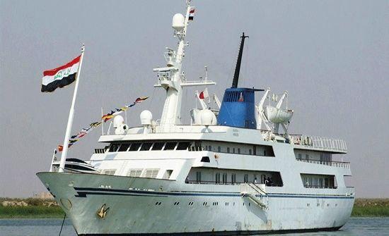 Naseem Al-Basra is considered a presidential yacht with a length of 82 meters and contains a presidential suite, dining and sleeping rooms, as well as 17 guest rooms, 18 cabins for the crew, a medical clinic, as well as a bathroom with golden edges.