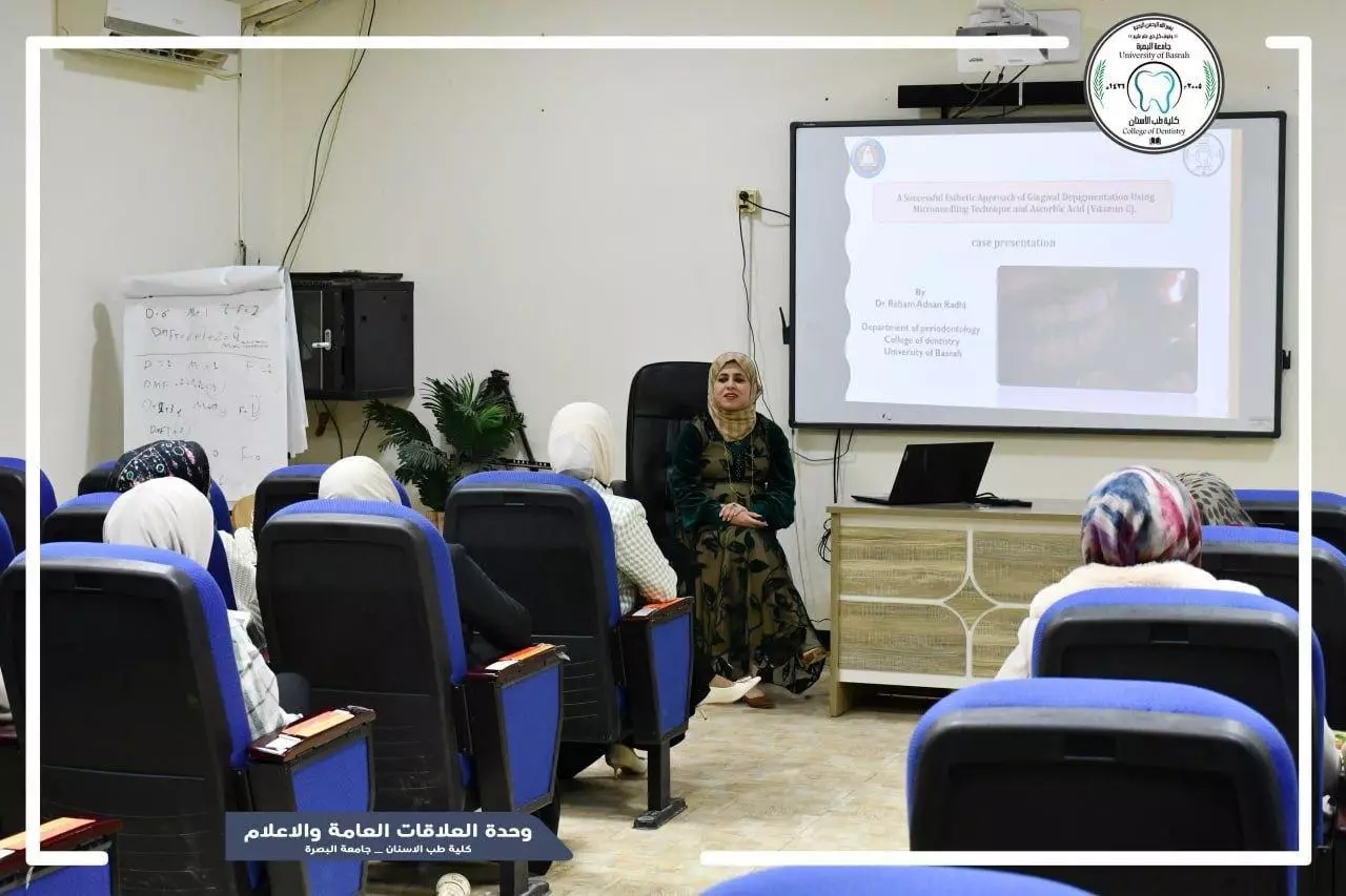 The College of Dentistry at the University of Basrah held a scientific lecture on the successful cosmetic method for removing gingival pigmentation using the microneedle technique and ascorbic acid (vitamin C).