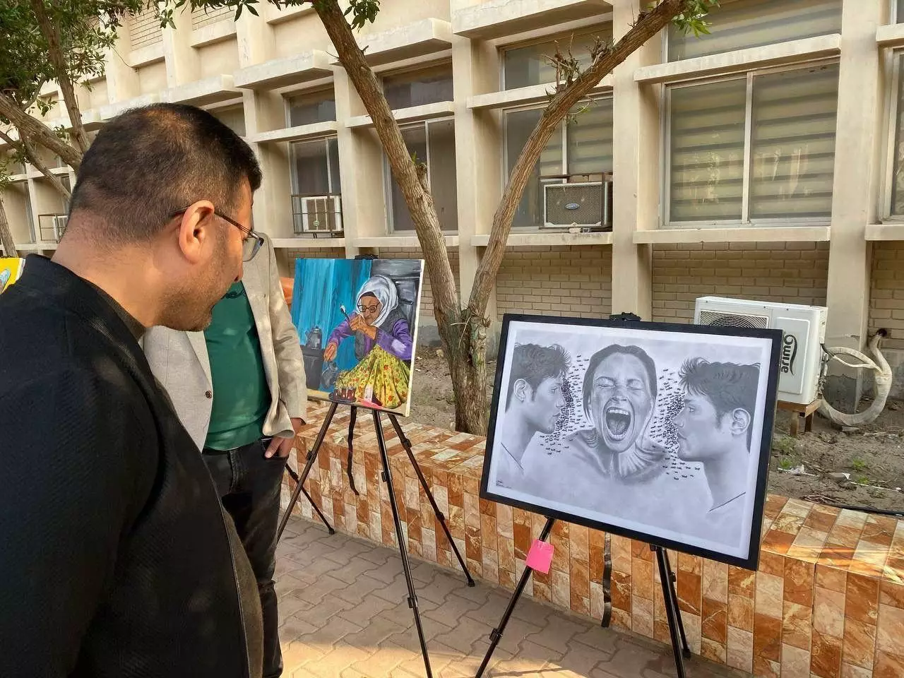 The conference included the participation of talented students from the departments of the college with various artistic paintings between drawing and Arabic calligraphy.