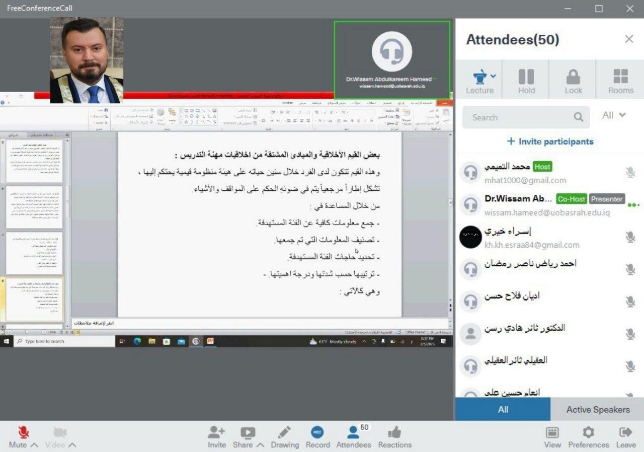 The Continuing Education and Development Center at the University of Basrah organized an online lecture on the ethics of the teaching profession.