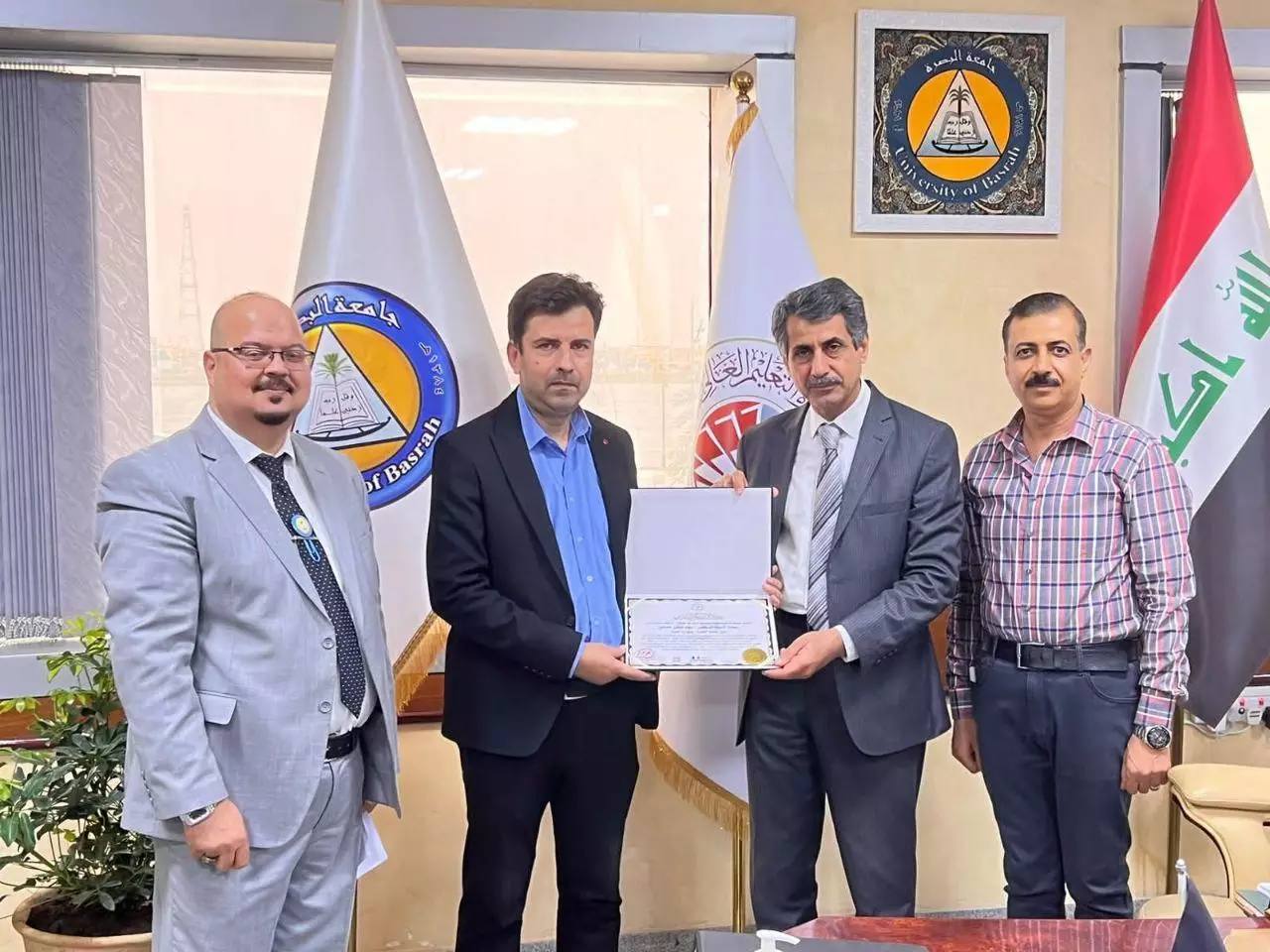 The President of the University of Basrah, Dr. Saad Shaheen Hammadi, was honored by the International Commission of Human Development Scholars (ISCHED) with a certificate of appreciation for the efforts made by him and their great effects in the process of building man in society.