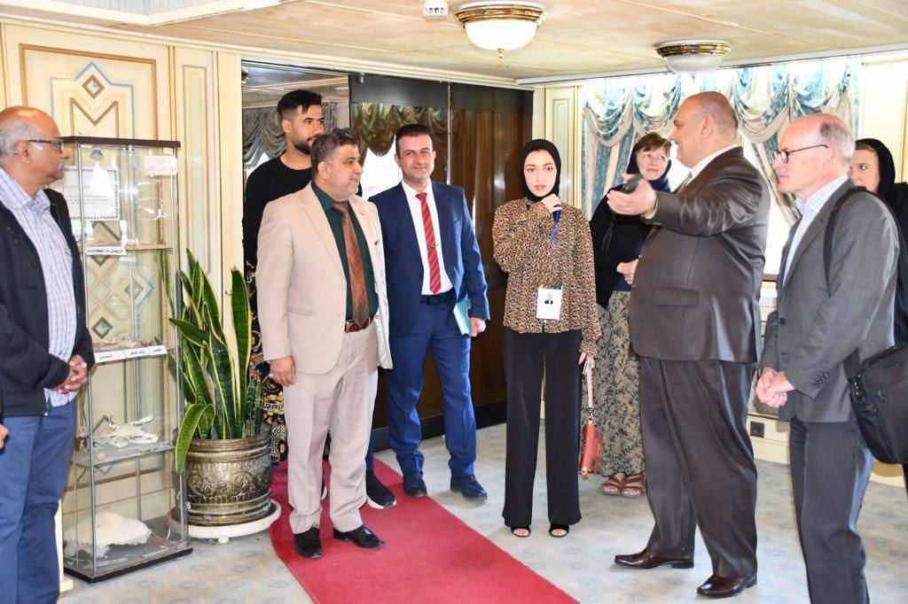The Director of the Center for Marine Sciences and the Director of the Department of Public Relations and Media at the University of Basrah received the administrative and technical staff of the ship (Logos Hope), which is anchored at a private berth in the presidential palaces complex on the banks of Shatt al-Arab.