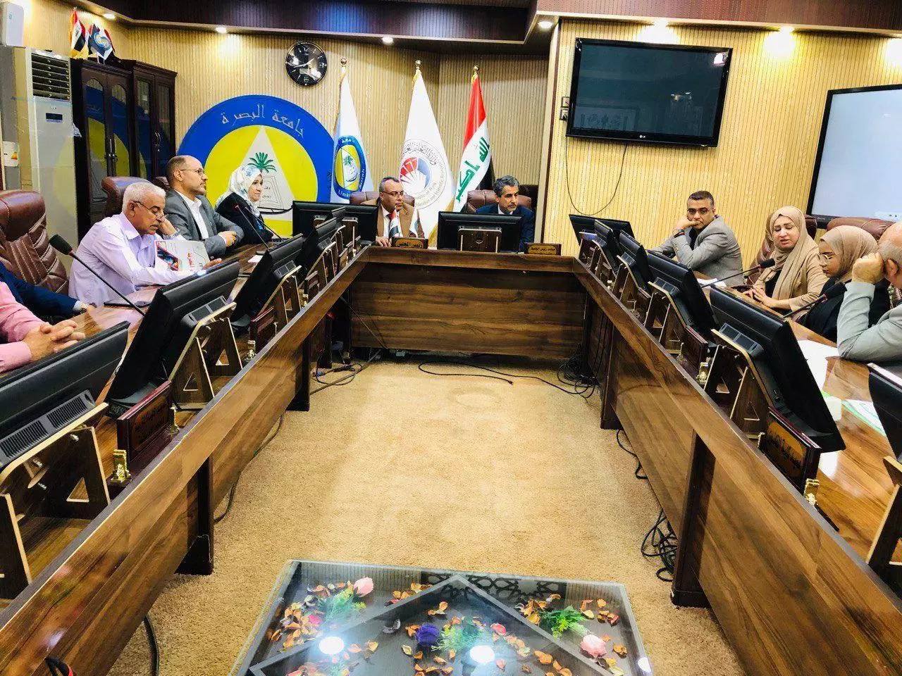 The President of the University of Basrah, Dr. Saad Shaheen Hammadi, met with a number of directors of governmental and private banks in the governorate, in the presence of specialists from the university.