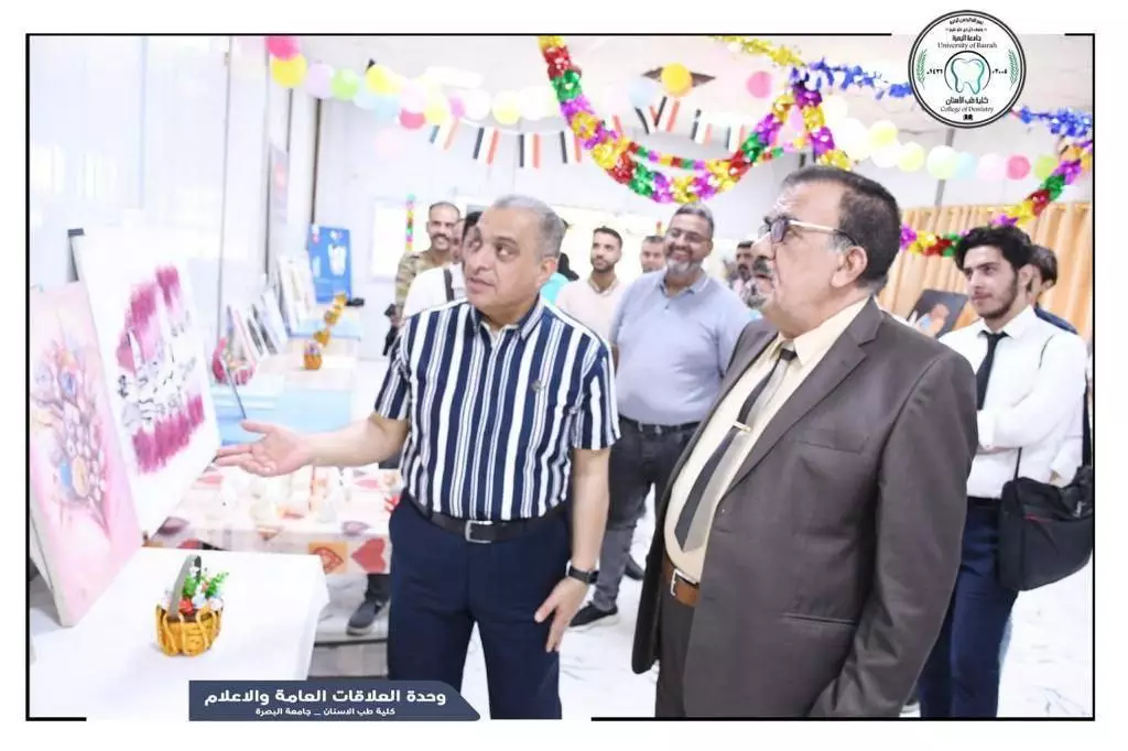 The exhibition, which was organized to celebrate the anniversary of the founding of the University of Basrah and its fifty-ninth anniversary, included distinguished artistic paintings of a special nature and artistic touches that embodied a wide imagination of creativity, carving and shaping molds for teeth in a professional way, and other artistic and manual works that added aesthetic to the products presented.