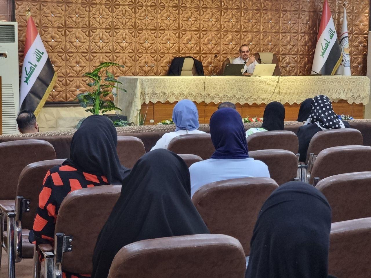 The workshop, which was presented by Dr. Furat Ahmed Mahdi, included giving a general idea about the installation of lasers, how they work, the electromagnetic spectrum in which lasers operate, and their uses in industry, measurement, the environment, space and medicine, with their positives and negatives.