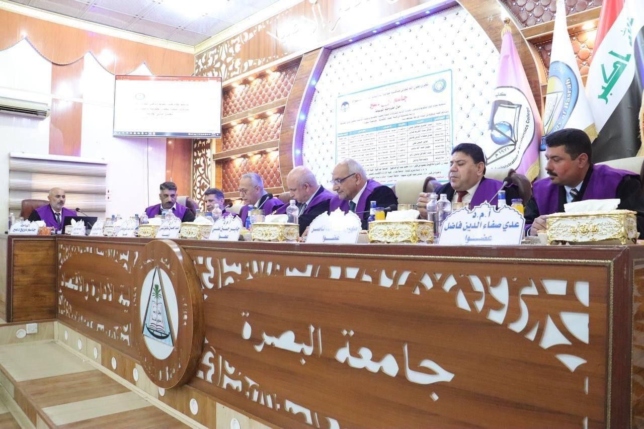 The College of Administration and Economics at the University of Basrah discussed a PhD thesis in accounting on (Designing an expert system to evaluate and qualify the financial efficiency of companies executing government contracts - an applied study in the Department of Government Contracts in Basra Governorate).