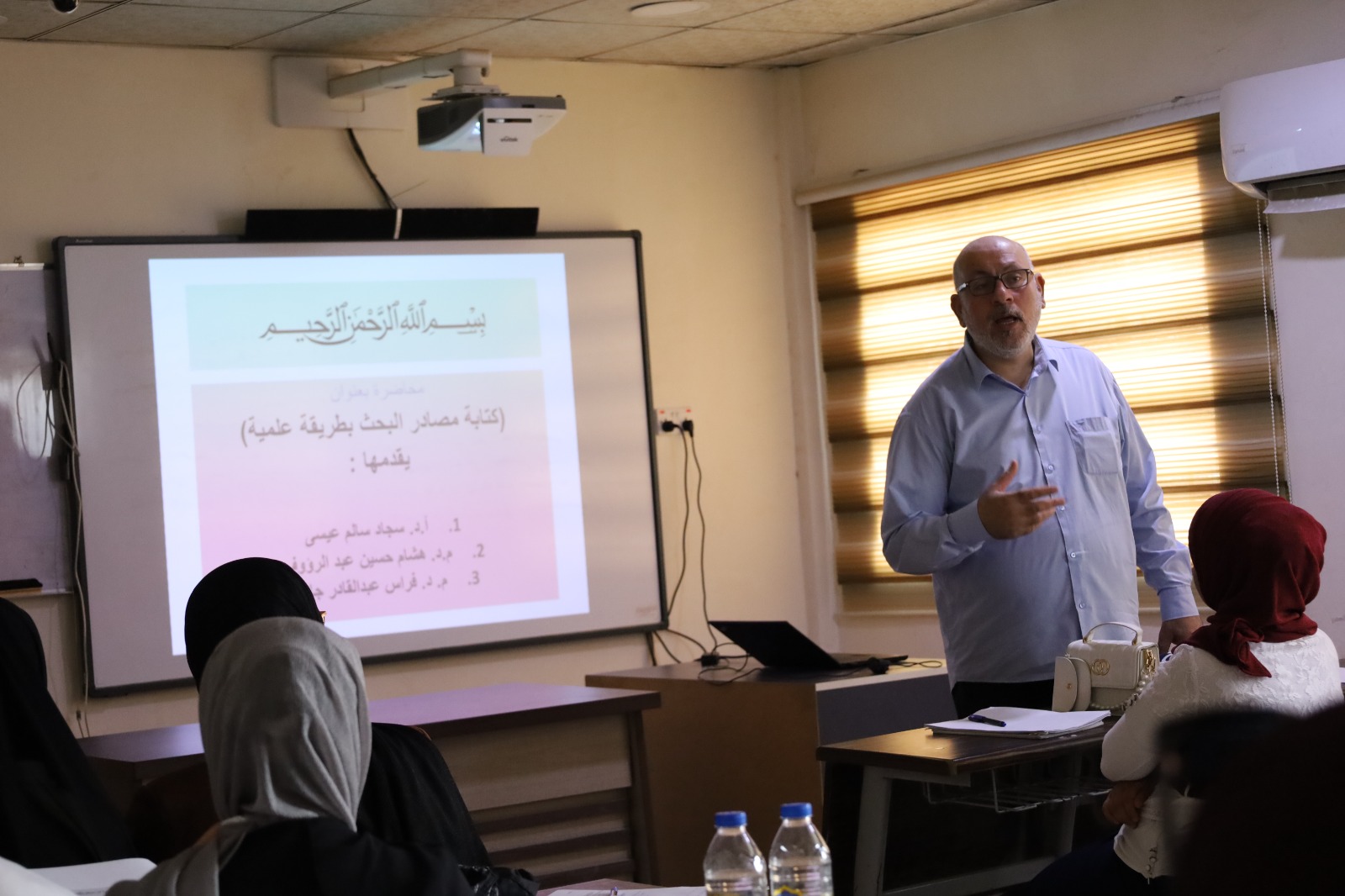 The College of Nursing at the University of Basra, in cooperation with the Continuing Education Unit in the college, organized a workshop on writing research sources in a scientific way, in which the teacher, Dr. Hisham Hussein Abdel Raouf, a member of the faculty at the college, and the teacher, Dr. Firas Abdel Qader, Head of the Community Health Branch, lectured. The workshop included a detailed explanation of the most important methods The basic and scientific basis for writing and indexing scientific sources in research, and the target group was students of the fourth stage, and the focus was on the (ApA) method and the (Van Coover) method for writing sourcesThe workshop aimed to develop the capabilities of students in the field of scientific research and qualify them to complete graduation research.