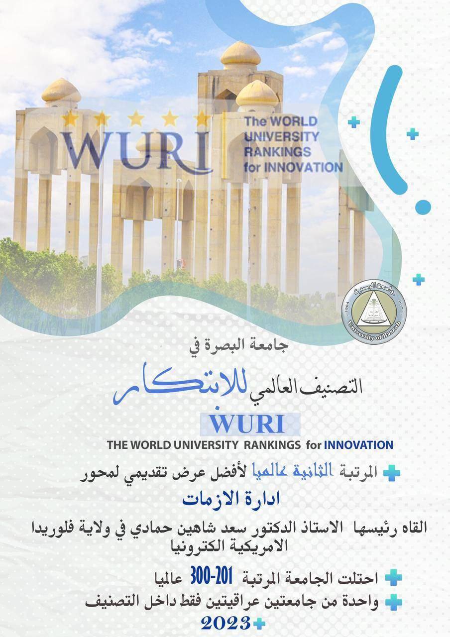 The University of Basrah ranked second in the world in the classification of innovation (WURI) in the axis of crisis management, which was entered by two universities at the level of Iraq.