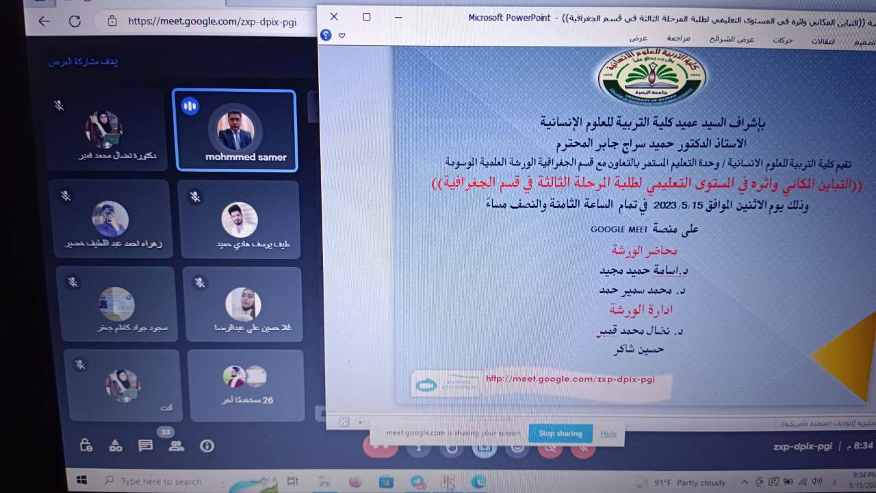 The College of Education for Human Sciences / University of Basra organized a workshop on (spatial variation and its impact on the scientific level of third-stage students in the Department of Geography)