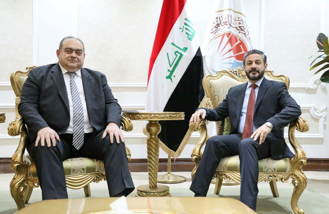 During a meeting with the Ambassador of the Republic of Romania to Iraq, Mr. Radu Octavian Dobri, the Minister of Higher Education and Scientific Research, Dr. Naeem Abd Yaser Al-Aboudi reviewed the development of scientific and academic cooperation between the two countries.