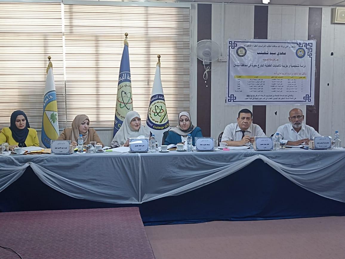 The instructor at the College of Veterinary Medicine at the University of Basrah, Dr. Adel Jabbar Hussein, participated in the discussion of the PhD student, Mahdi Sayed, from the College of Science, Department of Biology, at the same university, on his thesis, “A Diagnostic and Molecular Study of Extra-Intestinal Parasitic Infestations in Maysan Governorate.”