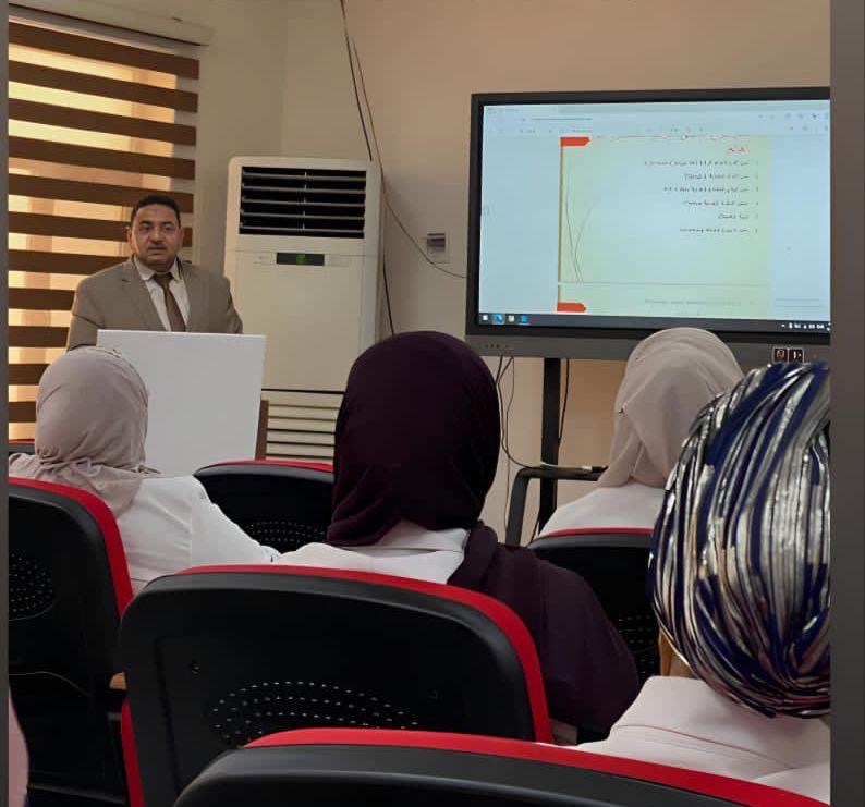 The lecture was delivered at the Basra Oil Company Hospital for Cardiac Surgery, targeting health and nursing cadres.