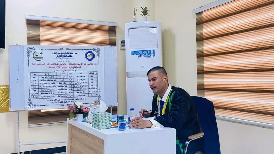 A PhD thesis at the Department of Fish and Marine Resources - College of Agriculture - University of Basrah on the feeding efficiency, growth and health status of common carp fingerlings as life indicators in evaluating the addition of some probiotics and synergistic mixtures to diets was discussed on Monday 6/26/2023.
