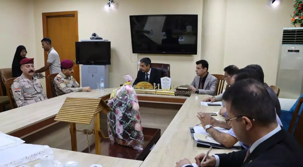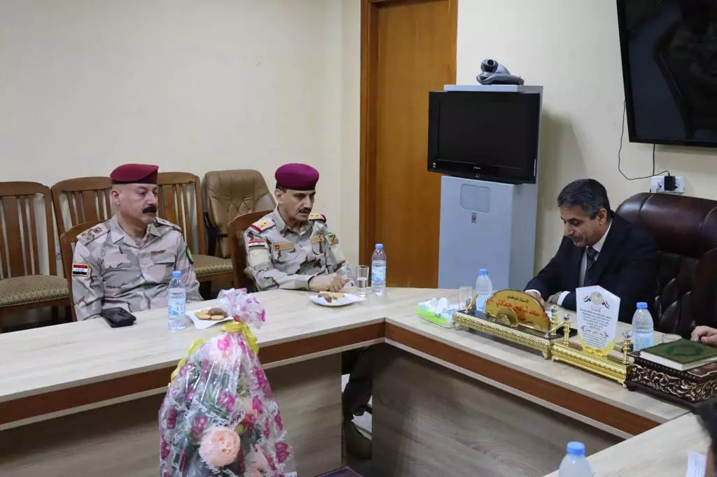 The President of the University of Basrah, Dr. Saad Shaheen Hammadi, received the Operations Commander of Basra Governorate, Major General Saad Mohsen Oreibi.