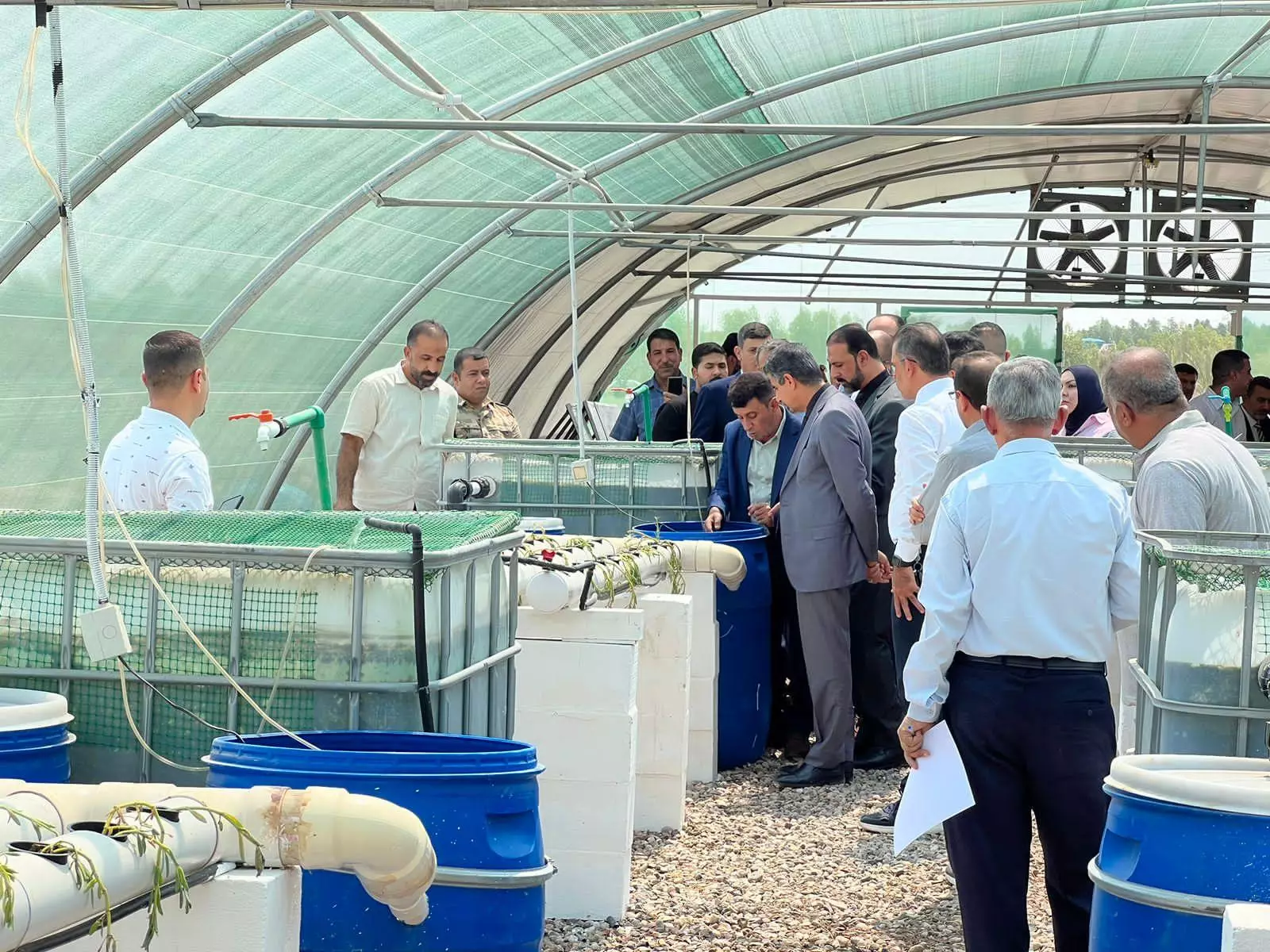 The President of the University of Basrah, Prof. Dr. Saad Shaheen Hammadi, in cooperation with the World Food Program, and within the projects presented by the Aquaculture Unit in the College of Agriculture, inaugurated the two projects of aquaculture (aquaponics system) and shrimp breeding, as these projects are considered among the pioneering projects within the sustainable agriculture programs.