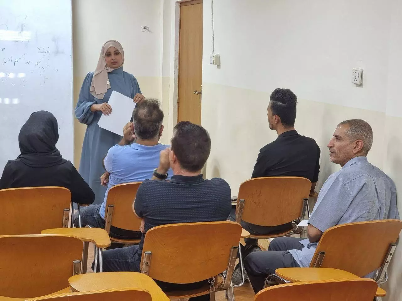The course, which was presented by trainer Buthaina Khalaf, included the basic skills of communication in the English language, the basics of English grammar, and the fields of translation.