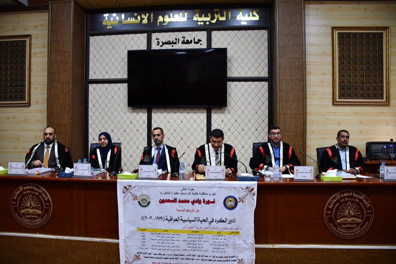 A doctoral thesis was discussed in the Department of History - College of Education for Human Sciences - University of Basra on (the role of the Kurds in Iraqi political life 1979-2003 - by the student (Noura Wadi Muhammad Al-Saadoun))