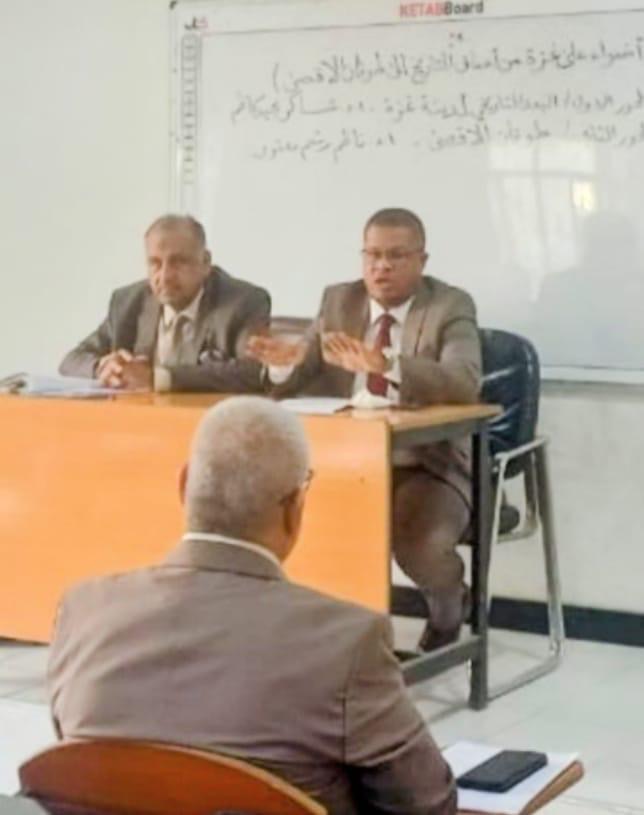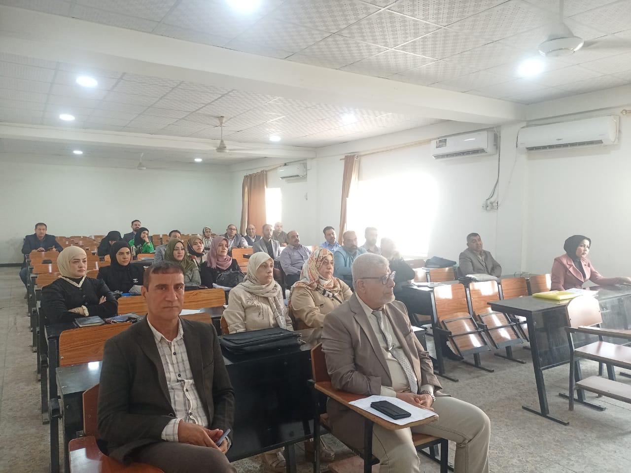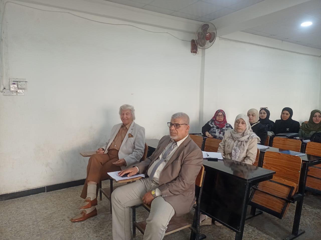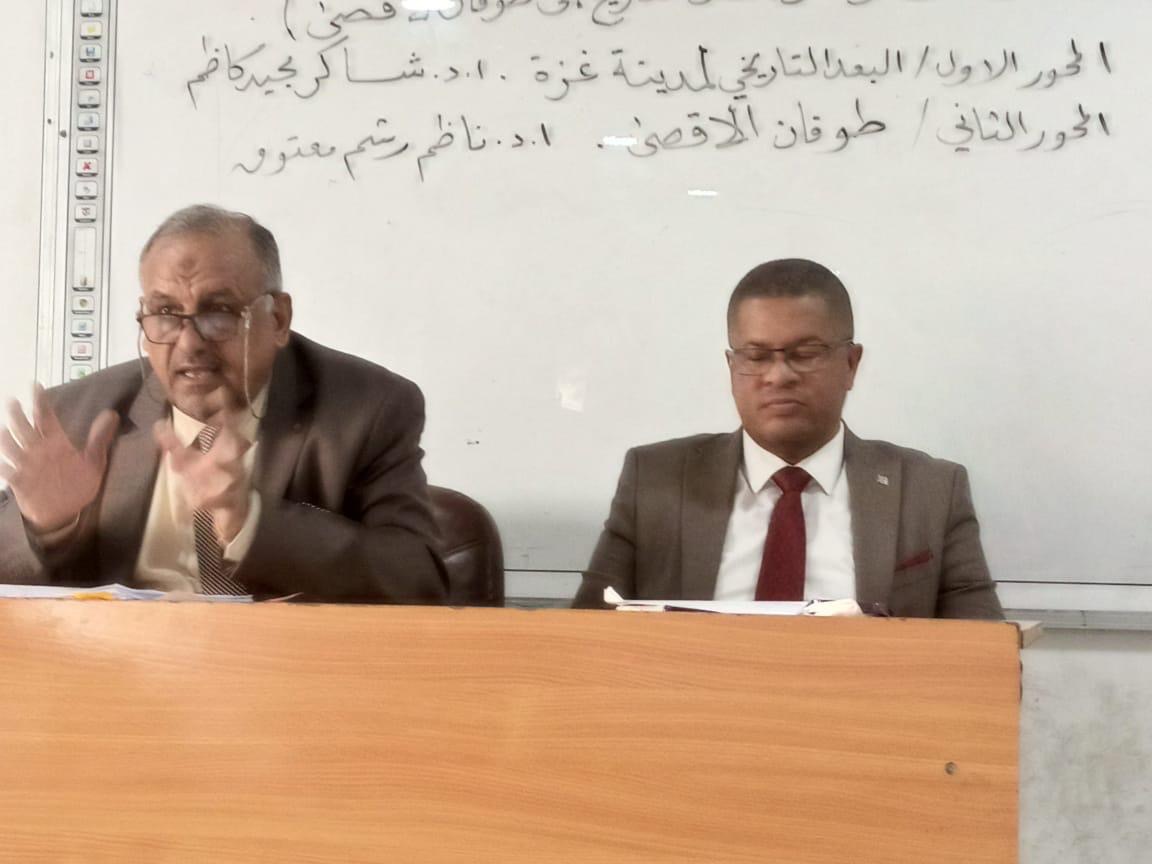 The symposium was presented by Professor Dr. Shaker Majeed Kazem, who addressed the historical dimension of Gaza City, and Professor Dr. Nazem Rashm Al-Emirate, who discussed the Al-Aqsa Flood. It was attended by many professors of the History Department and graduate students, along with a number of participants.