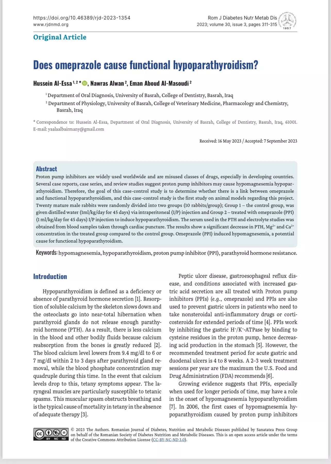 Lecturer Hussein Shatti Al-Issa, a lecturer in the Oral Diagnosis Branch at the College of Dentistry at the University of Basrah, published a research within the global database (Scopus) in the Romanian Journal for Diabetes Nutrition and Metabolic Diseases.