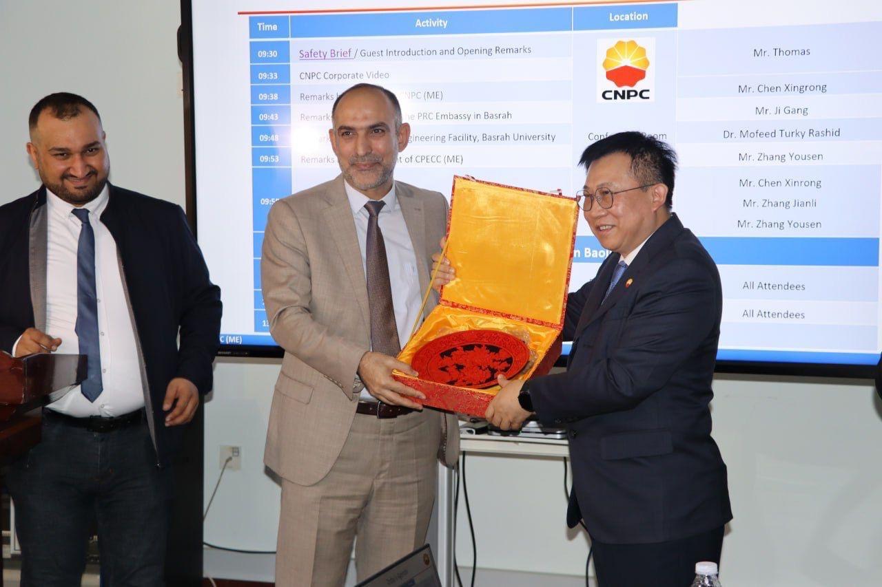The visit aims to strengthen relations between the University of Basrah, College of Engineering, and the Chinese Petroleum Engineering and Construction Company, and to train students and graduates from the University of Basra to provide them with job opportunities.