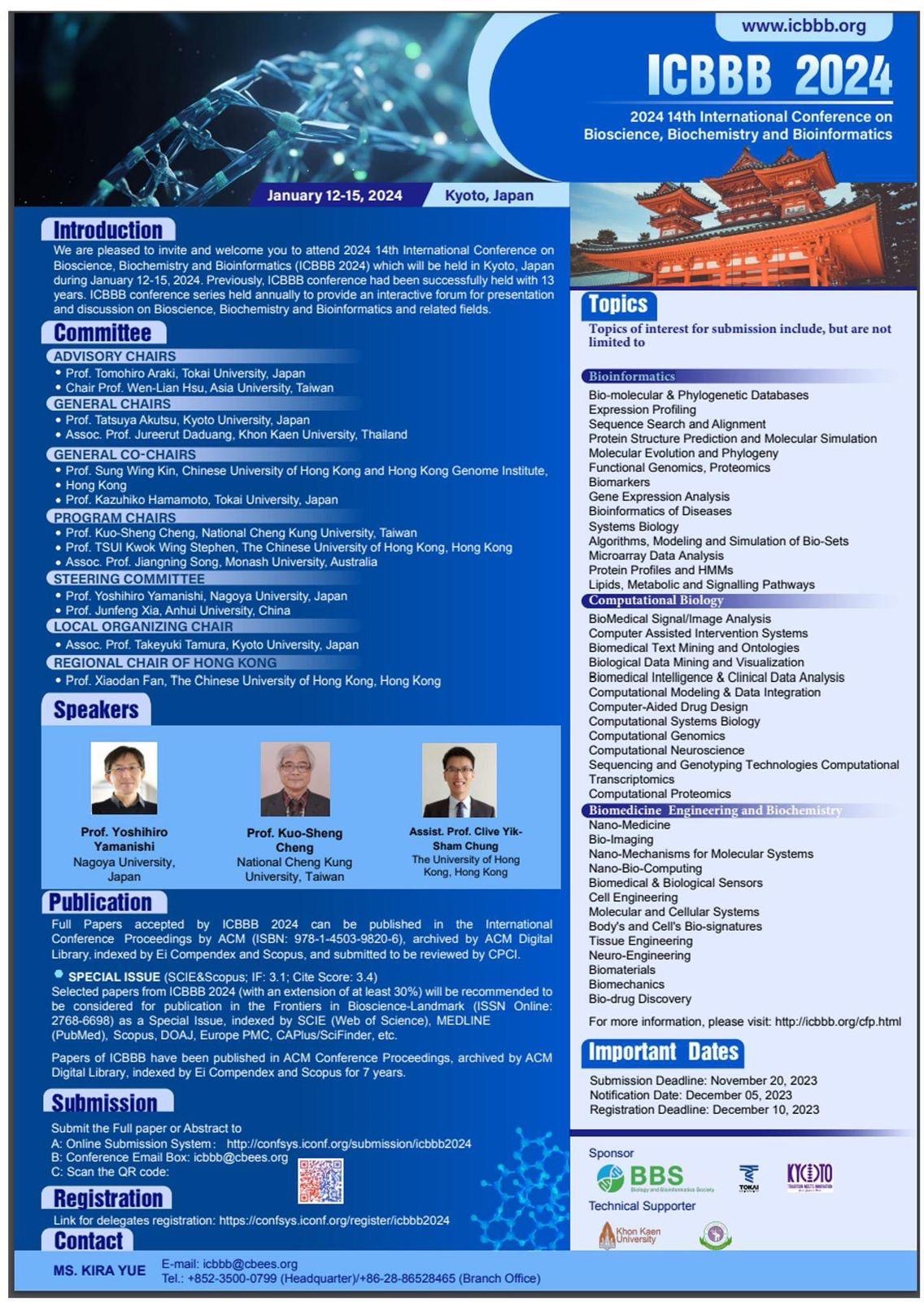 Two teachers from the Marine Sciences Center at University of Basrah, Professor Dr. Murtada Debej Nasser and Assistant Professor Dr. Amal Ghazi Yasser, participated as organizing and technical members in the 14th International Conference on Biosciences, Biochemistry and Bioinformatics (ICBBB 2024) for the year 2024 in Kyoto, Japan. The conference is sponsored by the Society for Biology and Bioinformatics, Tokai University of Japan, and the Kyoto Convention Office, and with technical support from Khon Kaen University and the Faculty of Pharmacy, Chiang Mai University, Thailand. The conference included lectures on computational biology, biomedical signal analysis, computer-aided intervention systems, biomedical intelligence, clinical data analysis, in addition to computational sequencing and genotyping techniques, tissue engineering, and neural engineering. Department of Media and Government Communications