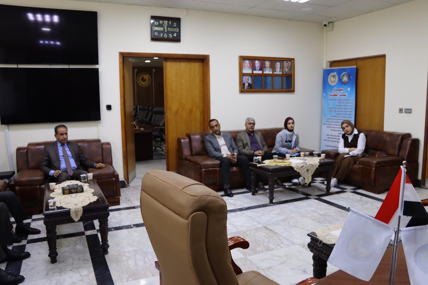 College of Engineering at the University of Basrah received a delegation from UNICEF, where the meeting was attended by Dr. Mufid Turki Rashid, Dr. Munir Abdel Jalil Ismail, Dr. Hamid Hayab Samir, and Dr. Ali Kamel Marzouq. The meeting included discussion of mechanisms for joint cooperation between the college and the organization in the field of climate change and environmental sustainability. Discussions focused on the issue of educating children, the necessity of providing a suitable study environment for them, and how to benefit from engineering expertise, especially architectural expertise, in designing model schools that adopt sustainable environmental solutions and in accordance with approved international standards. In addition to adopting green architecture in school and university buildings.