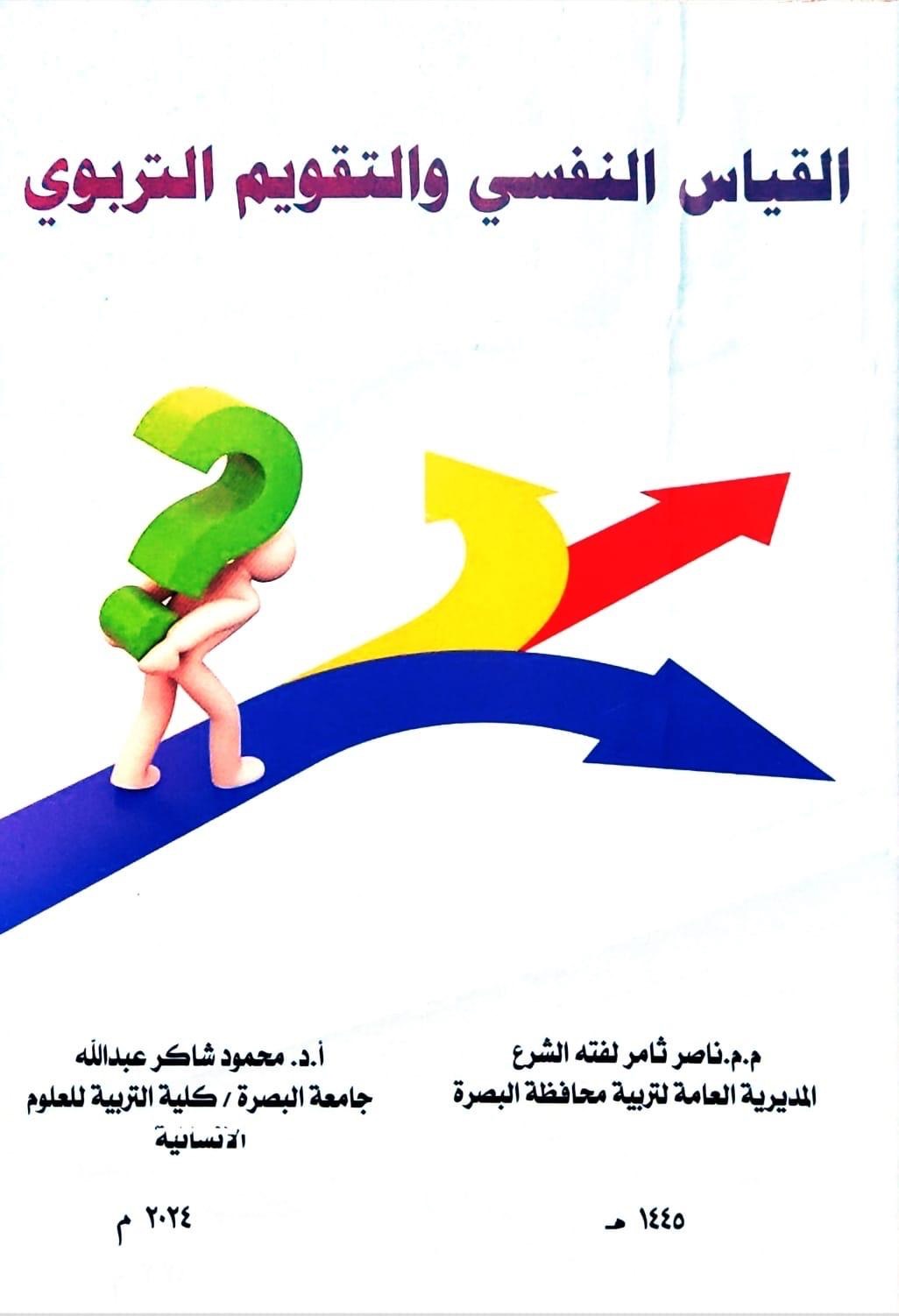 A book titled Psychological Measurement and Educational Evaluation was published by the teacher at the College of Education for Human Sciences at University of Basrah, Dr. Mahmoud Shaker Abdullah, in collaboration with the teacher Nasser Thamer Lafta. The book, which included 220 pages distributed over eight chapters, dealt with the concept of measurement and evaluation, the difference and relationship between them, the historical development of the process of measurement and evaluation and their role in the educational process. It also touched on the goals, levels and purposes of measurement and evaluation and the general characteristics and their importance in the educational institution. The book also touched on the fields and tools of educational evaluation as well as the steps Preparing classroom achievement tests, writing and drafting test items, and the characteristics of a good test.