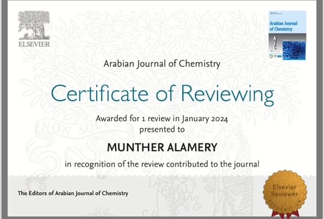 The lecturer at College of Science at University of Basrah, Dr. Munther Abdel-Jalil Muhammad Ali, was chosen as a scientific resident in the Arabian Journal of Chemistry.