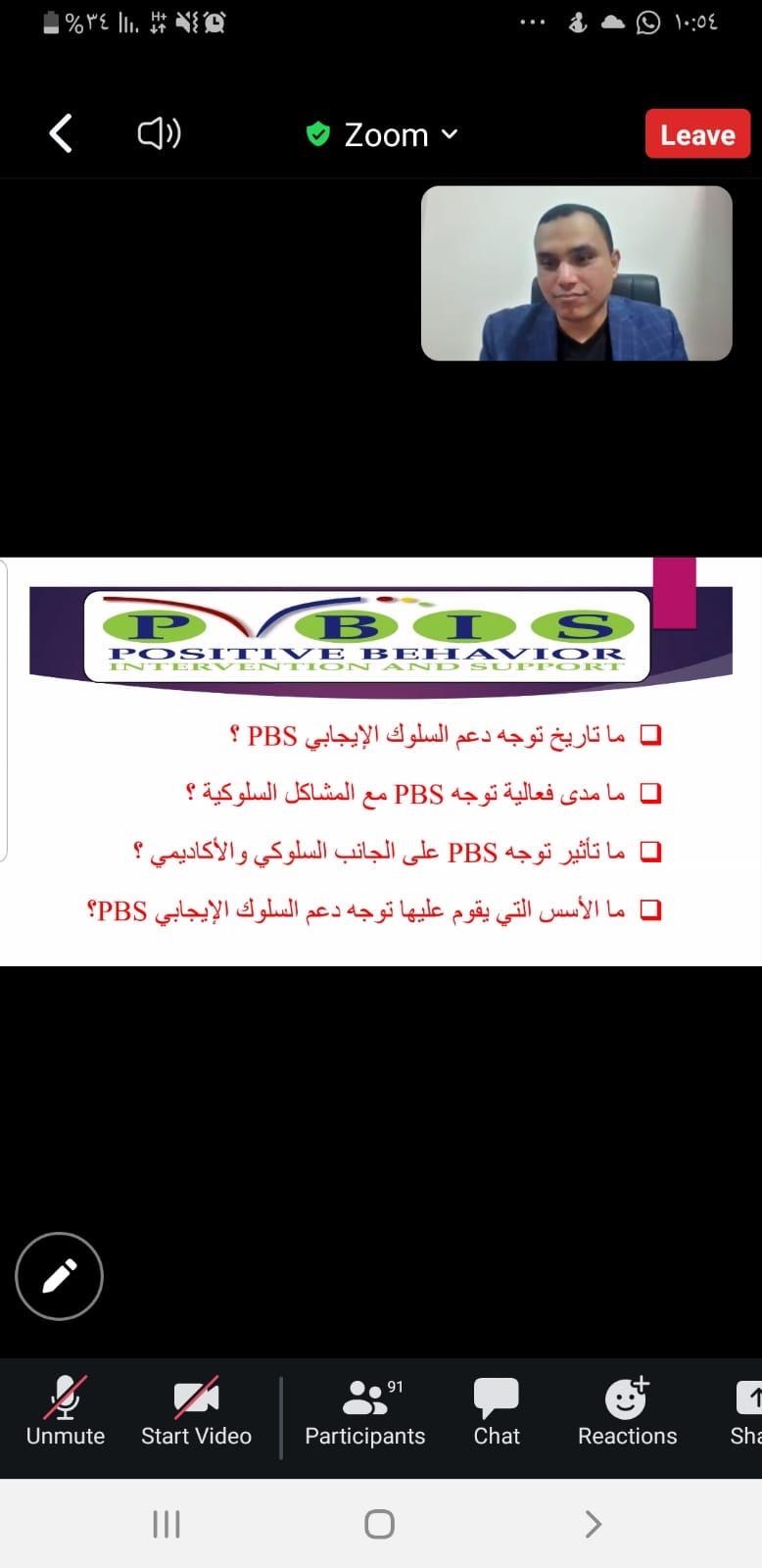 The Center for Development and Continuing Education at University of Basrah organized an electronic workshop on the approach of positive behavior support in treating behavioral problems for children and adolescents (PBS). The aim of the workshop is to introduce the positive behavior support approach in psychology and learn how to use positive behavior support techniques in dealing with behavioral problems. Proposing a model for employing the positive behavior support approach (PBS) in dealing with children’s problems The workshop presented by Dr. Walid Etman included a doctorate in special education and autism, a diploma in counseling and clinical psychology, and a specialized course in behavior management and modification (PBS Positive Behavior Support Orientation). The applied approach to psychology and behavior management and modification.. What is the difference? And the basic procedures in modifying behavior and the axes of dealing with behavioral problems from A to Z, supporting positive behavior from origin to the future, and supporting positive behavior... How does it work effectively “with evidence”? And when does the behavioral problem require intervention? In the end, the recommendation was the necessity of starting to implement positive behavior support (PBS) from early childhood and expanding the use of positive behavior support (PBS) in nurseries and schools.