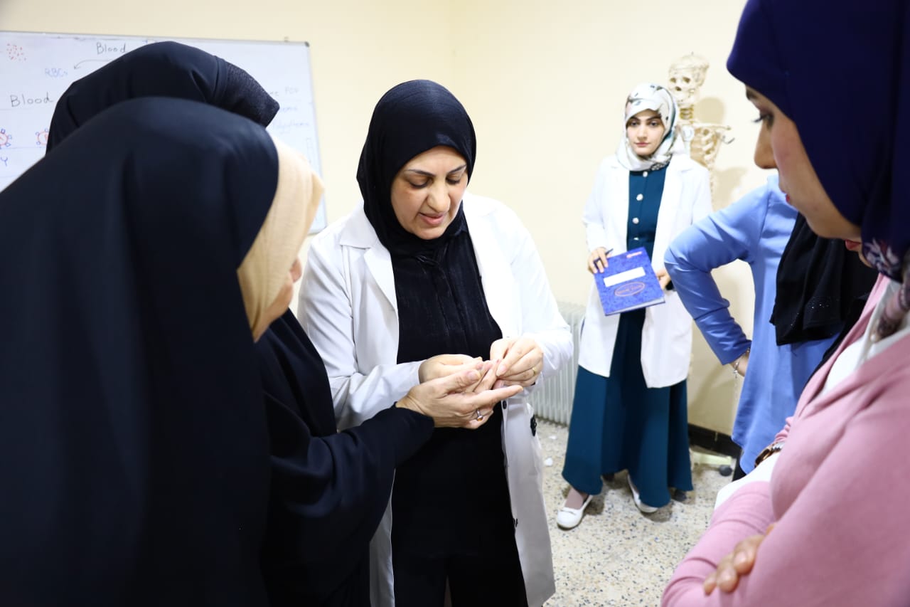 Sponsored by the Dean of the College of Nursing at the University of Basra, Assistant Professor Dr. Majid Asghar Muhammad Al-Nawab Under the supervision of Assistant Professor Dr. Sondos Baqir Daoud, Assistant Dean for Scientific Affairs The College of Nursing at the University of Basra organized a workshop on...Measuring hemoglobin in the blood using the hematocrit method In which the assistant teacher, Samaher Sabri Hamid, lectured Faculty member at the college.The workshop explained the method used to determine the concentration of hemoglobin in the blood, which is done by measuring the ratio of the volume of red blood cells to the volume of plasma in the blood sample. To find out if a person has anemia