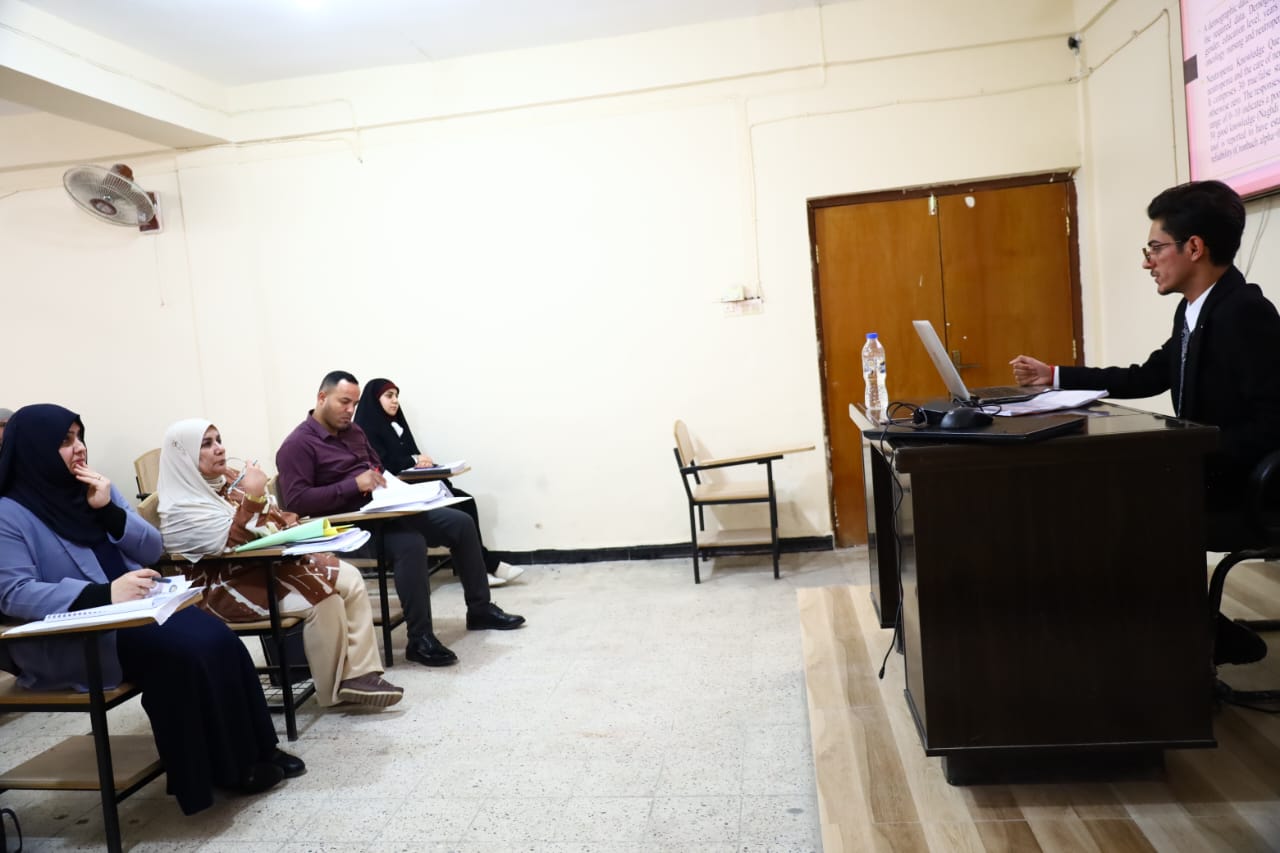 Sponsored by Assistant Professor Dr. Majid Asghar Muhammad Al-Nawab, Dean of the College of Nursing at the University of Basra Our college holds the annual scientific conference to discuss graduation research projects for fourth-year students for the academic year 2023-2024 (under the slogan “student graduation projects are a basic pillar for building and developing the nation”) With the participation of Assistant Professor Dr. Sondos Baqir Daoud, Assistant Dean for Scientific Affairs, and Professor Dr. Abdul Amir Abdullah Al-Moussawi, Assistant Dean for Administrative Affairs, and with the participation of a group of faculty members, employees, and students of the college.The deputies said that discussing research does not diminish the value and effort of the student’s research, but rather is a means for him to learn how to use the rules of scientific research principles, in addition to the fact that graduation projects aim to create a state of competition among students in order to choose the best research that addresses the most important problems while developing appropriate solutions to them. .The students presented their projects to the relevant committee and reviewed the most important results reached by those research projects through a presentation to them before the committee. The members of the relevant discussion committees urged the students to try to complete as many projects as possible, taking into account the circumstances that the students are going through. Directing them to address the problems they encountered during the research period and developing solutions to the difficulties in the practical aspect. It is worth noting that the College of Nursing at the University of Basra holds this conference annually to compete among college students and nominate distinguished projects that benefit society through developments, taking into account academic scientific research.In addition to the deputies, we hope that the graduation research presented by the students will be a scientific addition to the development of scientific research in health institutions and the university.