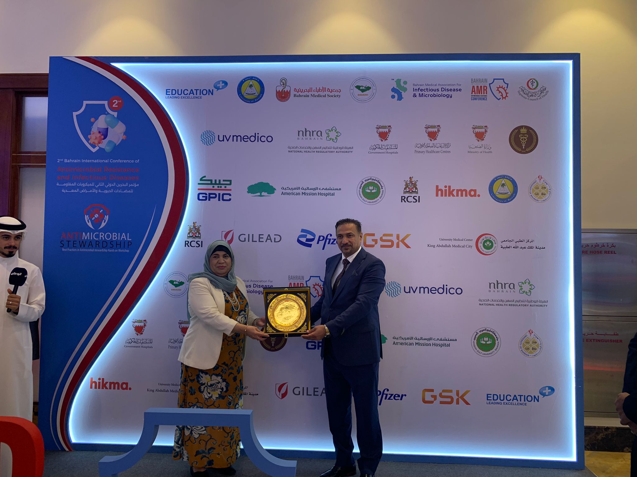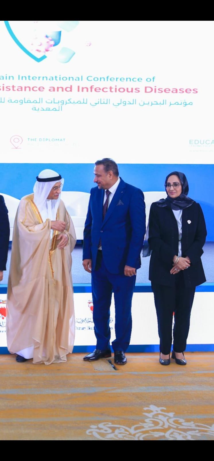 The College of Nursing at the University of Basra participated in the International Conference on Antibiotic-Resistant Microbes and Infectious Diseases from September 19 to 22, 2024, organized by the Infectious Diseases Association of the Bahrain Medical Society, with wide participation. The University of Basra was represented by Assistant Professor Dr. Majid Asghar Muhammad Al-Nawab, Dean of the College of Nursing, and Professor Dr. Abdul Amir Abdullah Al-Moussawi, Assistant Dean for Administrative Affairs. The conference also included the topic of infection control and vaccinations and their importance in their various forms, the most important infectious diseases and how to diagnose, treat and deal with them. Lieutenant General Dr. Sheikh Muhammad bin Abdullah Al Khalifa, Chairman of the Supreme Council of Health, honored the University of Basra, represented by its Dean, Assistant Professor Dr. Majid Asghar Muhammad Al-Nawab, for their support of the conference.