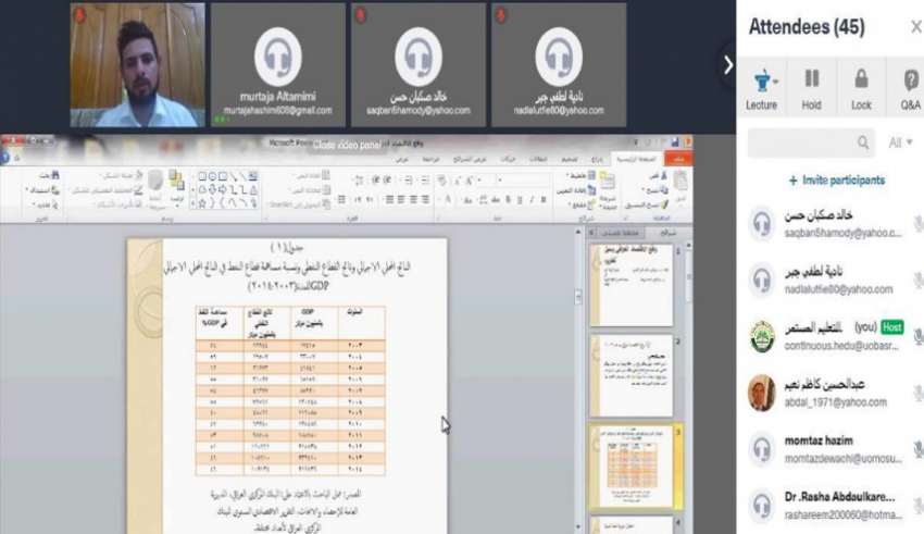 The faculty members in the College of Education for Human Sciences, University of Basrah, Mr.Murtaja Hashem Baqer Al-Tamimi and Mrs. Nabaa Kareem Ahmed Al-Rabeah organized an online workshop on the reality of the Iraqi economy and ways to develop it.