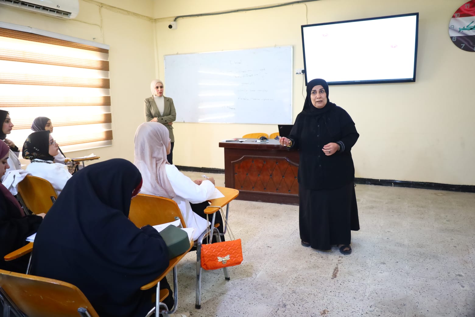 The Continuing Education Unit, in cooperation with the Women's Affairs Unit, organized a workshop on early detection of breast cancer, which was lectured by Assistant Professor Dr. Sundus Baqir Dawood, Assistant Dean for Scientific Affairs. The workshop was moderated by Dr. Fatima Jassim Muhammad, Head of the Women's Affairs Unit The seminar included early detection of breast cancer. The attending students were introduced to the dangers of breast cancer after presenting Iraqi and international statistics in this regard and explaining the most important symptoms and signs associated with the disease, and how to diagnose, treat and prevent this deadly disease that leads to the lives of women, in addition to training students on the method of self-examination of the breast using simulation dolls regarding breast cancer. For his part, Al-Nawab stressed the college's keenness to organize many awareness seminars and workshops throughout the year, in order to activate the college's role in reducing community problems and contributing to solving them.