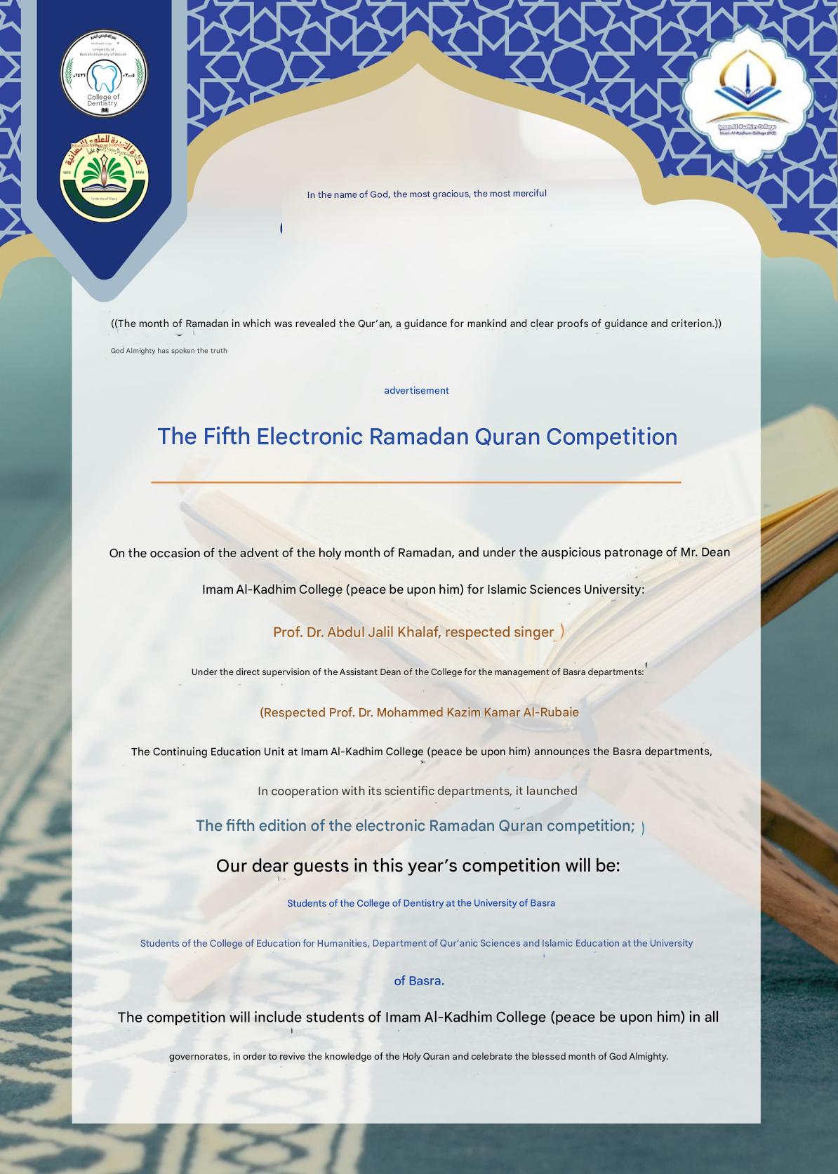 The Continuing Education Unit at Imam Al-Kadhim College announces the launch of the electronic Ramadan Quran competition