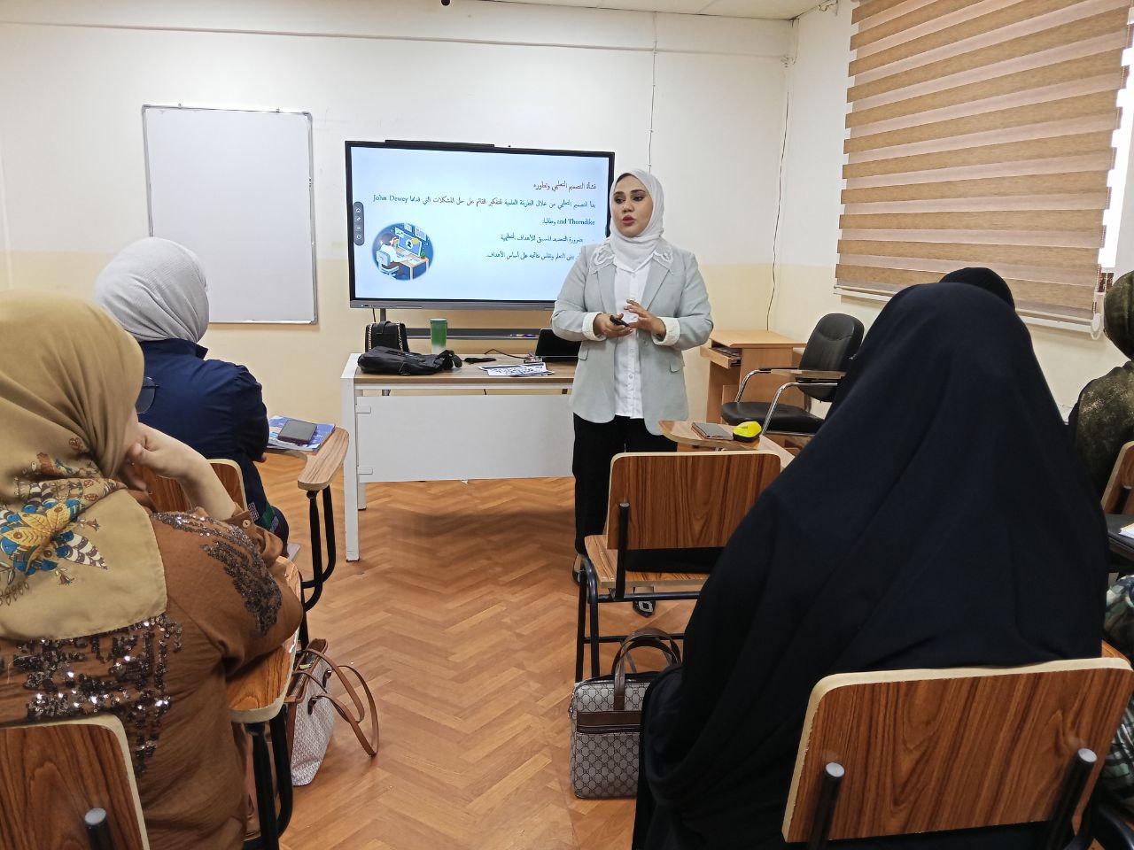 The lecture, delivered by Dr. Zainab Ali Khalaf, introduced trainees to the process of designing a lesson in a systematic and professional manner that benefits both instructors and students, as it saves time and effort for both parties. The lecture also emphasized the importance of instructional design in presenting scientific content in a clear, coherent, and well-structured way. By the end of the session, participants were expected to understand the concept and significance of instructional design for both instructors and learners, recognize the value of formulating SMART objectives, and easily determine classroom rules.
