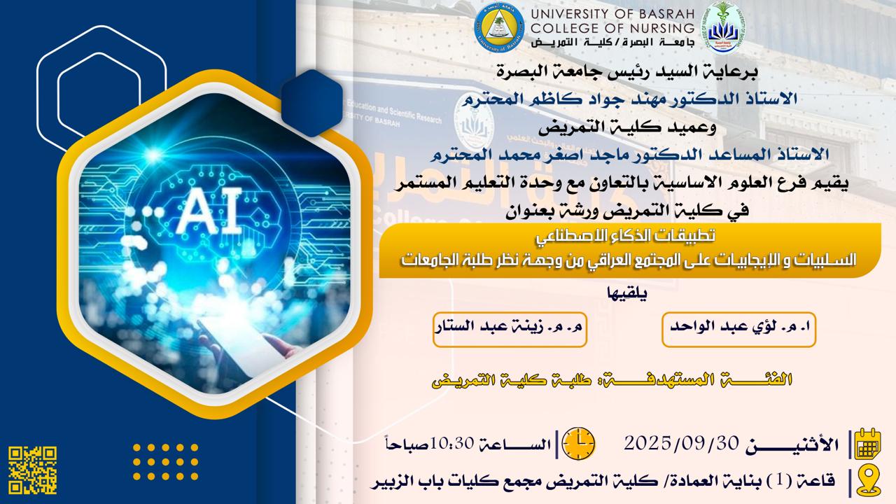 A seminar titled "Applications of Artificial Intelligence: The Positives and Negatives for Iraqi Society from the Perspective of University Students"