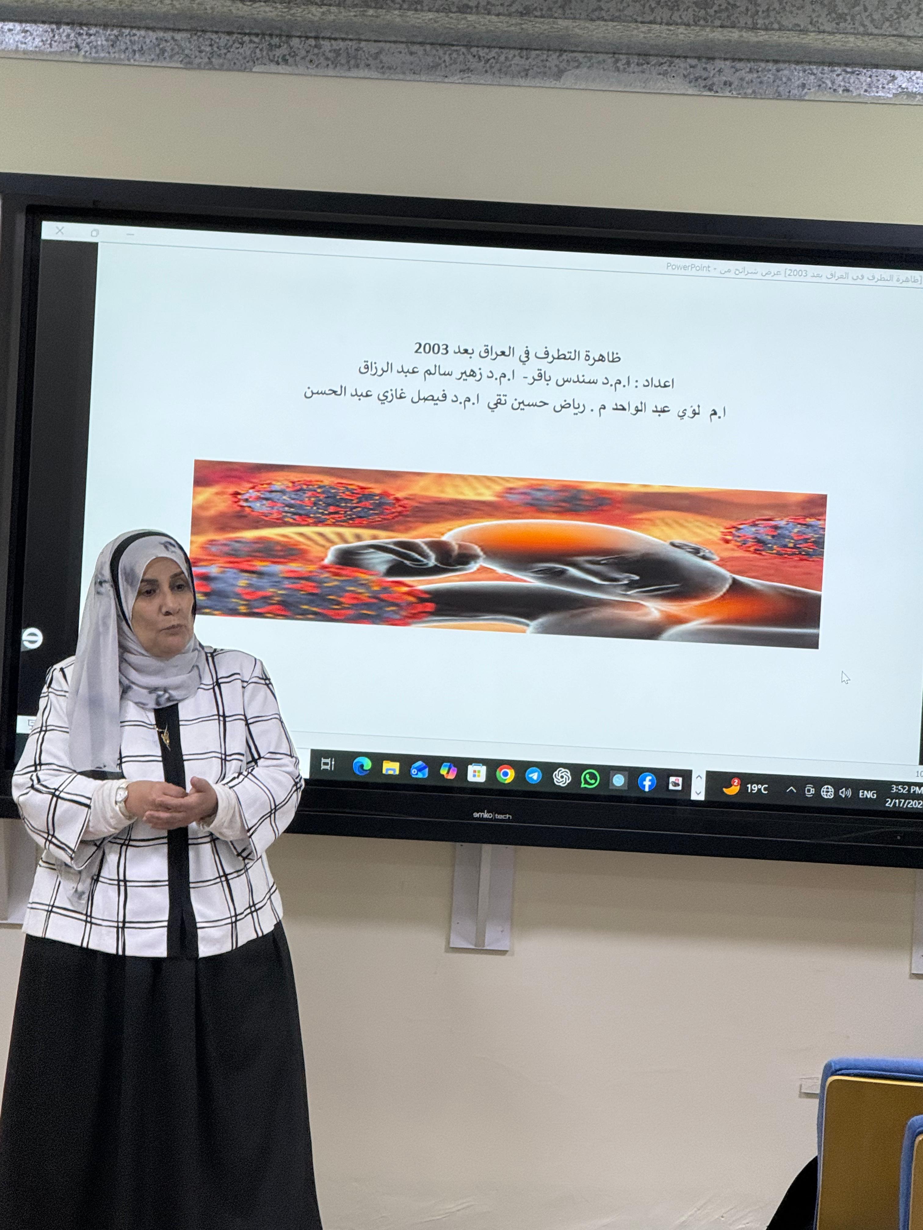 At the conclusion of the seminar, Assistant Professor Dr. Sundus Baqir Dawood emphasized that the College of Nursing places great importance on instilling intellectual awareness in students and combating extremist ideologies through education and enlightenment, praising the efforts of the academic staff in supporting intellectual security and serving the community.