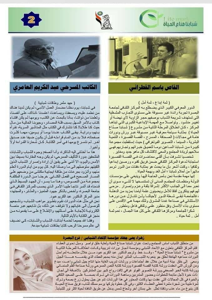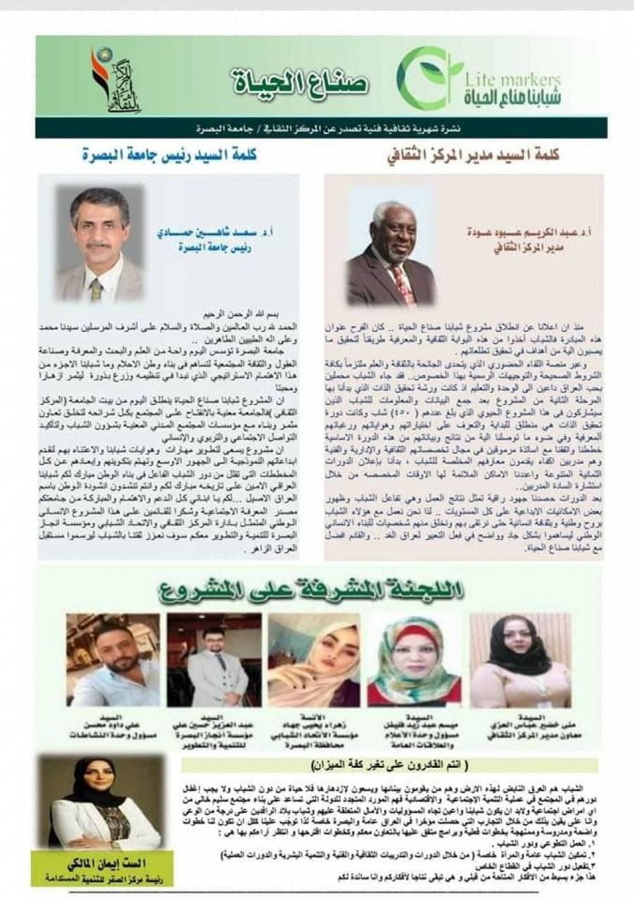 The Cultural Center at University of Basrah issued a bulletin to cover the activities of the second edition of the (Our Younth are Life Makers) project, which was launched by the center late last year